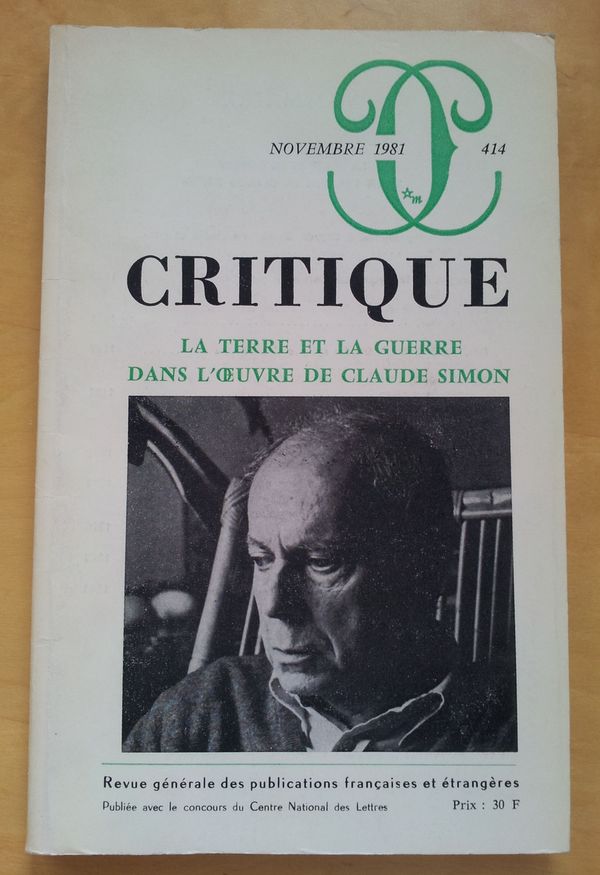 2 mars 2012, par Christine GeninLa Terre et la guerre dans l’œuvre de Claude Simon. Critique, 414, novembre 1981. Paris : Éditions de Minuit, Ce numéro de la revue dirigée par Jean Piel marque un seuil dans la critique simonienne qui sera (…) -