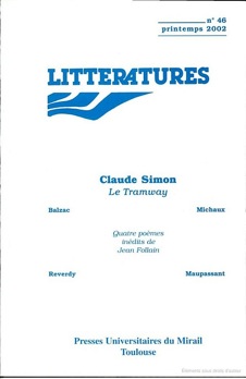 13 février 2012, par Joëlle GleizeClaude Simon et Le Tramway /éd. Anne-Lise BLANC. - Littératures, 46, printemps 2002 -