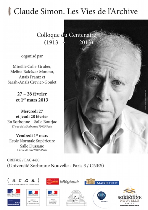 Claude Simon. Les Vies de l’Archive (27, 28 février et 1er mars 2013, Paris 3-Sorbonne Nouvelle)