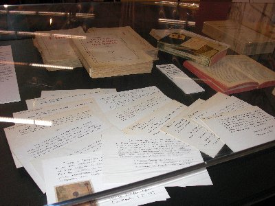Ces fiches étaient exposées dans l’exposition Claude Simon. « L’Inépuisable chaos du monde » de la BPI (2013) (photographie de la vitrine ci-dessus).