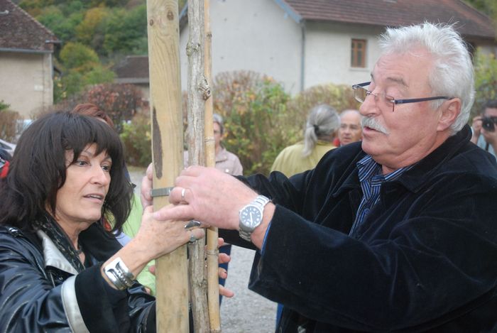 Plantation d’un acacia sur l’emplacement de la maison des Simon aux Planches par M. Hubert Darbon, maire des Planches.