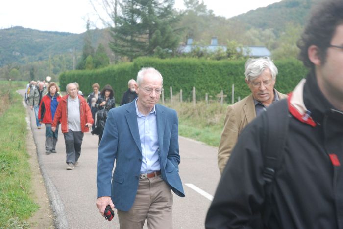 Rendez-vous sur le Champ de Mars et départ pour le Dérochoir puis Les Planches, les falaises, le cimetière, « la » fontaine, l’église, le petit pont, la cascade des Tufs, la maison natale des frère et sœurs de Louis Simon, avec l’aimable participation de Pascal Collin, responsable communication et environnement à la Communauté de communes et de M. René Ruffinoni, fin connaisseur du milieu naturel de la Reculée des Planches. Retour par Mesnay.