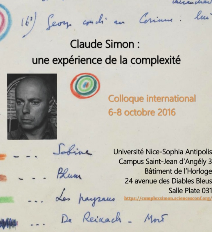 Accueil > Actualités et événements > Colloques > Claude Simon : une expérience de la complexité. Nice, 6-8 octobre 2016