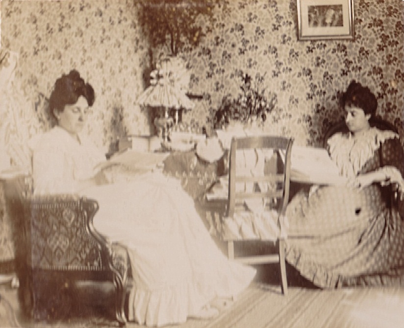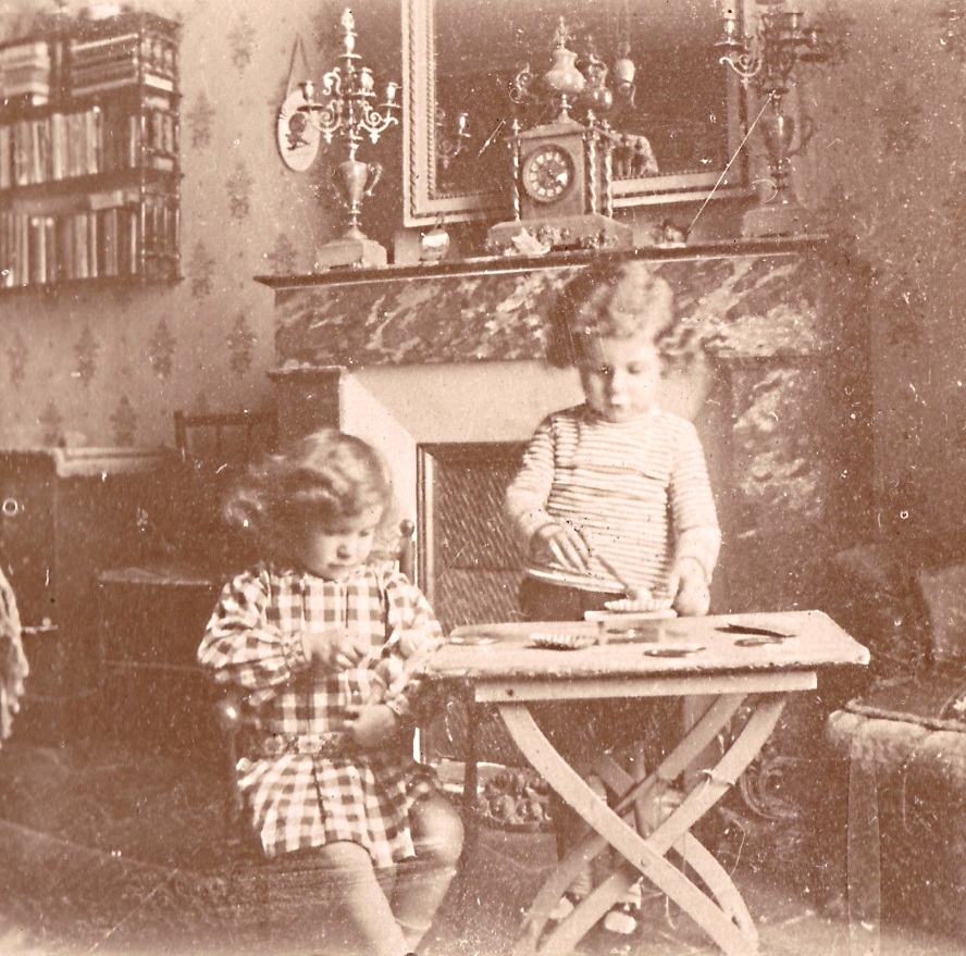 Claude et sa cousine Suzanne (Poupette) dans le salon de la rue de La cloche d'Or à Perpignan, vers 1916