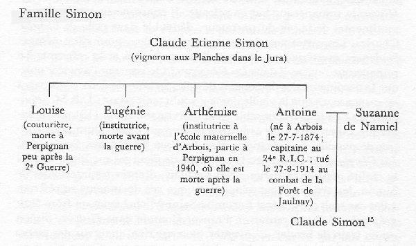 Dans un premier temps Simon construit une famille fictive calquée sur sa propre famille mais incorporant bien d’autres éléments. La famille Thomas apparaît pour la première fois dans L ’Herbe. Pour une large part, la vie et la mort de Marie reflètent celles d’une tante paternelle de Claude Simon. Le courage tranquille de Marie, le sacrifice consenti pour un frère plus jeune, la fuite vers le sud-ouest en 1940, la vente de la maison familiale : tout cela est pris sur la vie. Mais si on compare la famille Thomas à la famille paternelle de Simon, on voit à quel point l’écrivain a transformé, pour les besoins de la fiction, la composition de sa famille :