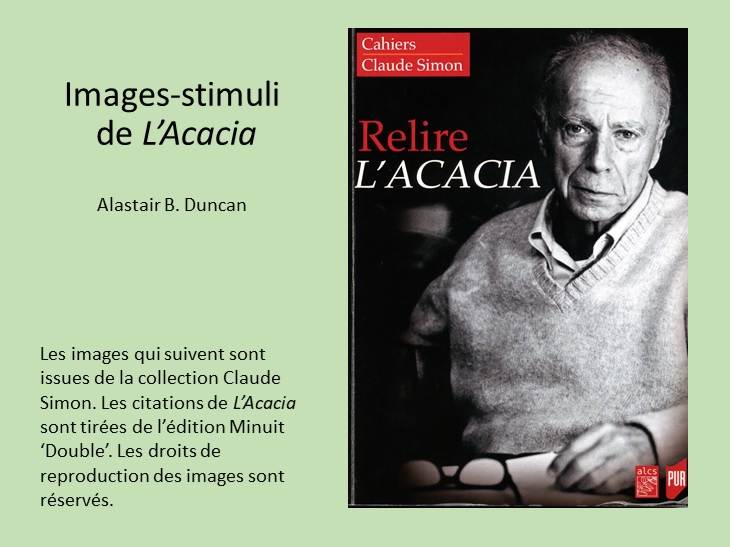 Duncan, Alastair B. Quelques images-stimuli de L’Acacia
