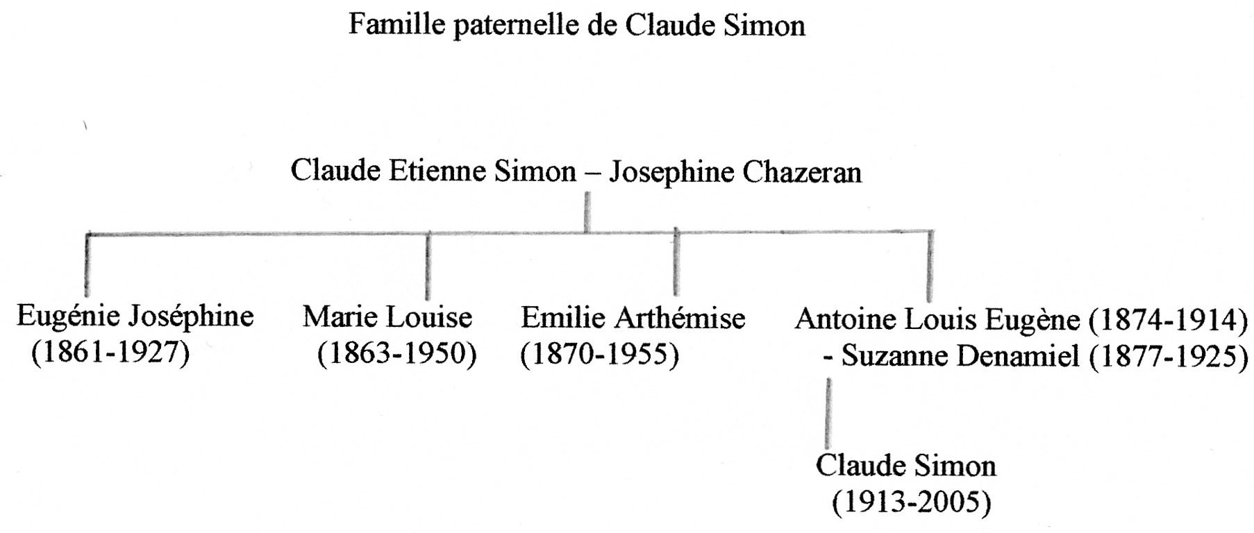 On peut le comparer avec l’arbre généalogique des personnages de la famille Thomas dans L’Herbe et lire à ce sujet Alastair Duncan, « Claude Simon : Le projet autobiographique », §18 :