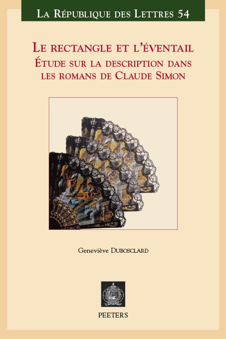 Geneviève Dubosclard. Le rectangle et l’éventail. Étude sur la description dans les romans de Claude Simon. Leuven : Peeters, 2014. VI-613 p. (La République des Lettres, 54)