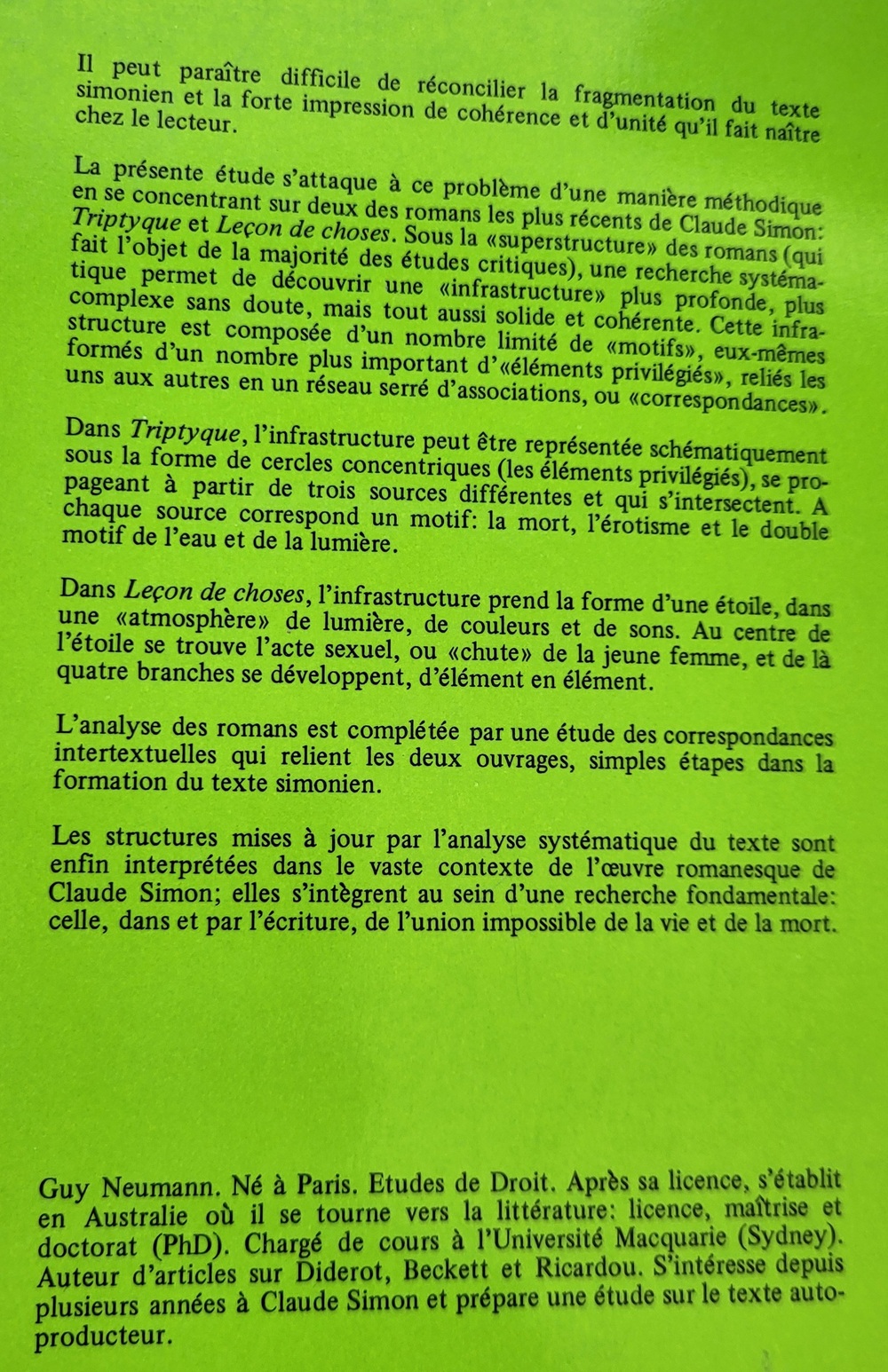 Échos et correspondances dans Triptyque et Leçon de choses de Claude Simon. Lausanne : L’Age d’homme, 1983. 293 p.
