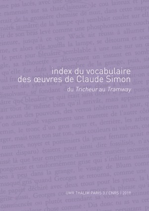 Cet index du vocabulaire de Claude Simon remplace celui réalisé en 1993 au sein de l’équipe Hubert de Phalèse (Paris 3 Sorbonne nouvelle) à partir des textes numérisés par Patrick Rebollar et Pascal Mougin, qui est est resté consultable sur le site de l’équipe Hubert de Phalèse jusqu’en 2010.