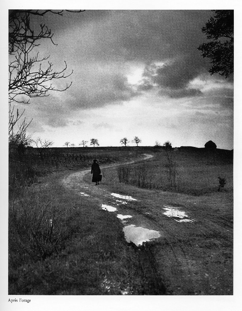 « Après l’orage » (Tante Mie sur le chemin de Chemillarde, sur la route de Poligny). Photographie de Claude Simon, publiée dans Photographies