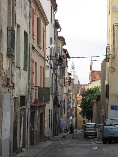 la grande maison, l’espèce de citadelle de silence et de respectabilité au centre du dédale des vieilles rues de la vieille ville, elle-même semblable à une citadelle au pied de celle édifiée six cents ans plus tôt par un roi d’Aragon, fortifiée par Charles Quint, entourée ensuite par Vauban de formidables et vertigineuses murailles qui englobaient en même temps les quartiers gitans, les rues à bordels, les six ou sept églises où scintillaient les ors des retables baroques, les couvents, les hôtels aux meneaux Renaissance, l’ancienne halle des marchands, les cafés décorés de céramiques, de femmes iris et de plantes vertes, les places aux statues de bronze, le tribunal au fronton corinthien, cafés, places, tribunal reliés par un tramway pas beaucoup plus grand qu’un jouet d’enfant passant, anachronique et ferraillant, devant les arcades gothiques, les terrasses fleuries d’hortensias, les quincailleries, les magasins de rubans, les réclames d’anis, de chocolats, de savons, de cigares, et les affiches aux violentes couleurs des tournées théâtrales.