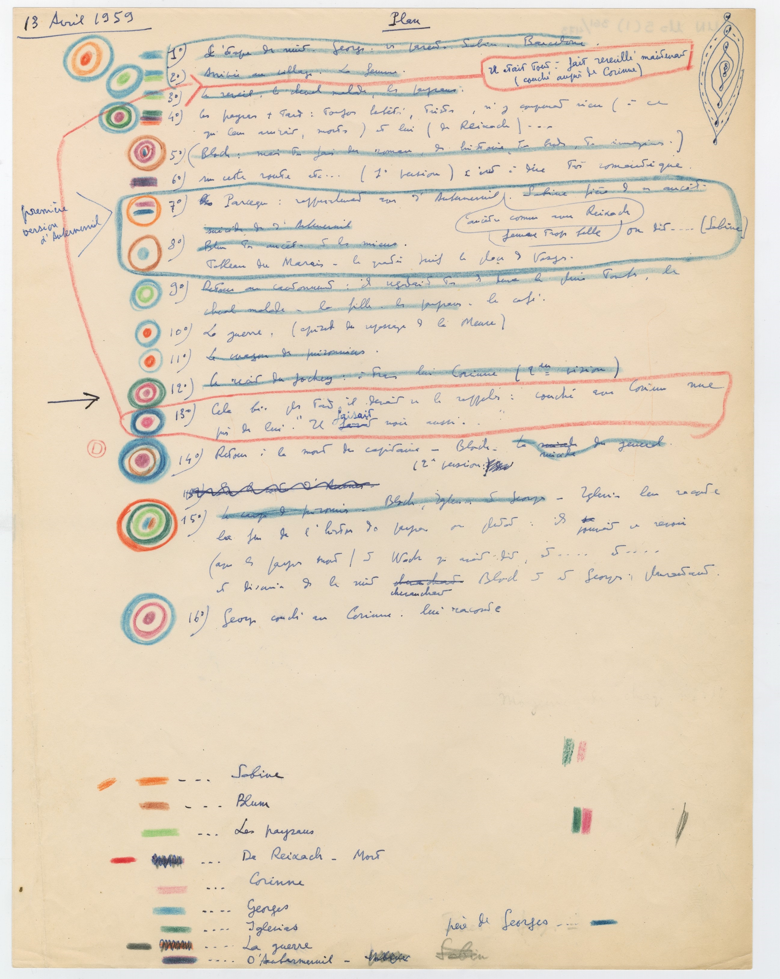 Accueil > Claude Simon > Manuscrits > Plan pour La Route des Flandres
