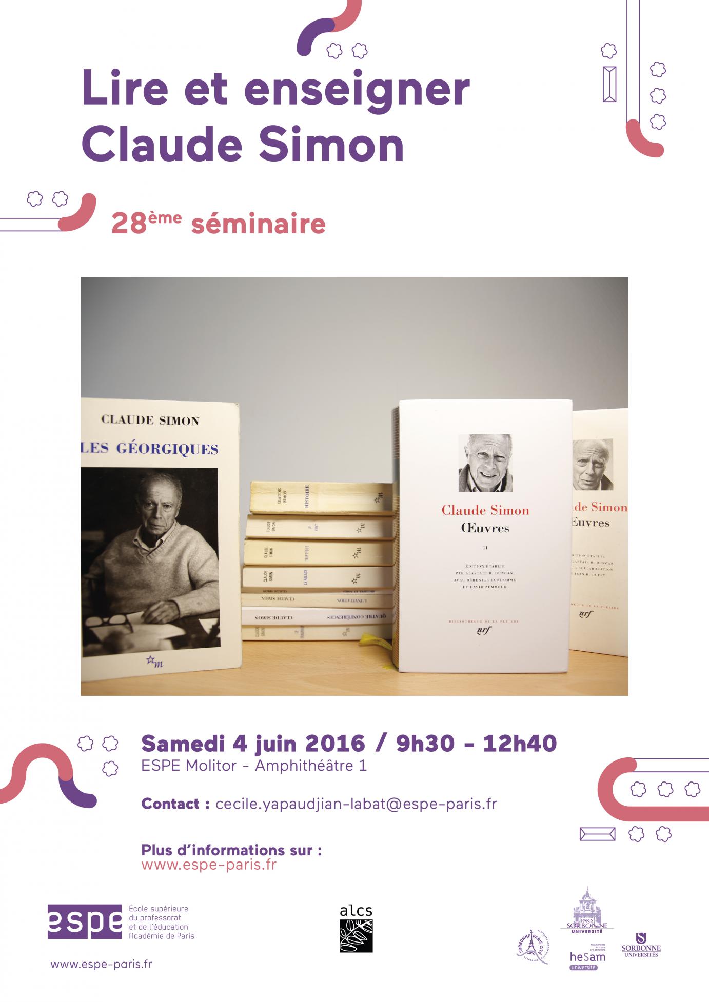 Le 28e Séminaire "Claude Simon" organisé par L’ALCS et l’ESPE de Paris aura pour thème « Lire et enseigner Claude Simon ».